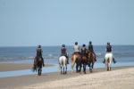 De volgende dag alweer zo’n stralend zonnetje. Met de eigen paarden zijn we naar een parkeerplaats gereden waar je dicht bij het strand zat zodat diegenen nog even een keertje lekker langs het strand konden rijden zonder de zware duintocht nog eens te hoeven maken. Wederom waren de paparazzi in groten getale aanwezig. De niet ruiters hebben lekker op het strand en in de strandtent gezeten en in de loop van de middag gingen de meesten weer naar huis.